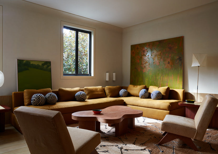 The Studio’s involvement extends into the main house, where it reimagined several rooms and interior architecture. Terracotta tiles in the bathroom tap into the heritage of Mexican craft. Barragan-inspired shutters frame the windows, a custom pattern Nepalese silk rug stretches across the floor like a sun-baked field.